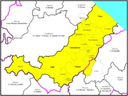 El 4 de junio de 1563 la diócesis, hasta entonces inmediatamente sujeta a la Santa Sede, pasó a formar parte de la provincia eclesiástica de la arquidiócesis de Urbino.