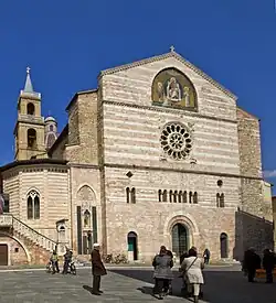 En 1133 por orden del obispo Marco se construyó una nueva catedral, como atestigua un epígrafe en la fachada de la iglesia.[11] Fue consagrada en 1145 por el obispo Benedetto con ocasión de la celebración de un Concilio en Foligno, presidido por el cardenal Giulio con el título de San Marcello[13] y ampliada en 1201. En el siglo XIII también se erigieron las iglesias de San Claudio, San Domenico y San Giovanni Profiamma.