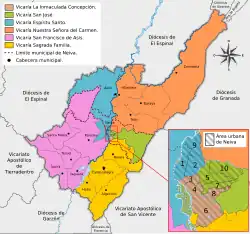 - ↑ a b «Mapa de la Diócesis de Neiva». Conferencia Episcopal de Colombia. Archivado desde el original el 18 de noviembre de 2011. Consultado el 4 de agosto de 2010.