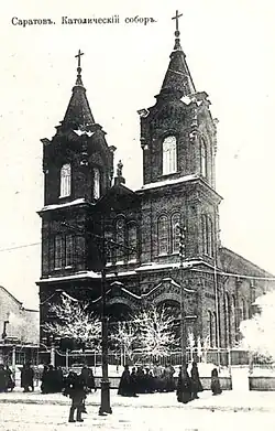 - ↑ a b (en ruso) Una breve historia de la Iglesia Católica Romana en el territorio de la moderna Diócesis de San Clemente en Saratov. Historia antes de 1939