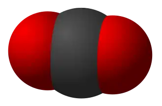 Antes de las normas de la IUPAC de 2005, era también conocido como anhídrido carbónico. Este compuesto químico está compuesto de un átomo de carbono unido con enlaces covalentes dobles a dos átomos de oxígeno. El CO2 existe naturalmente en la atmósfera de la Tierra como gas traza en una fracción molar de alrededor de 400 ppm.[2] La concentración actual es de alrededor 0,04 % (410 ppm) en volumen, un 45 % mayor a los niveles preindustriales de 280 ppm. Fuentes naturales incluyen volcanes, aguas termales, géiseres y es liberado por rocas carbonatadas al diluirse en agua y ácidos. Dado que el CO2 es soluble en agua, ocurre naturalmente en aguas subterráneas, ríos, lagos, campos de hielo, glaciares y mares. Está presente en yacimientos de petróleo y gas natural.[3]