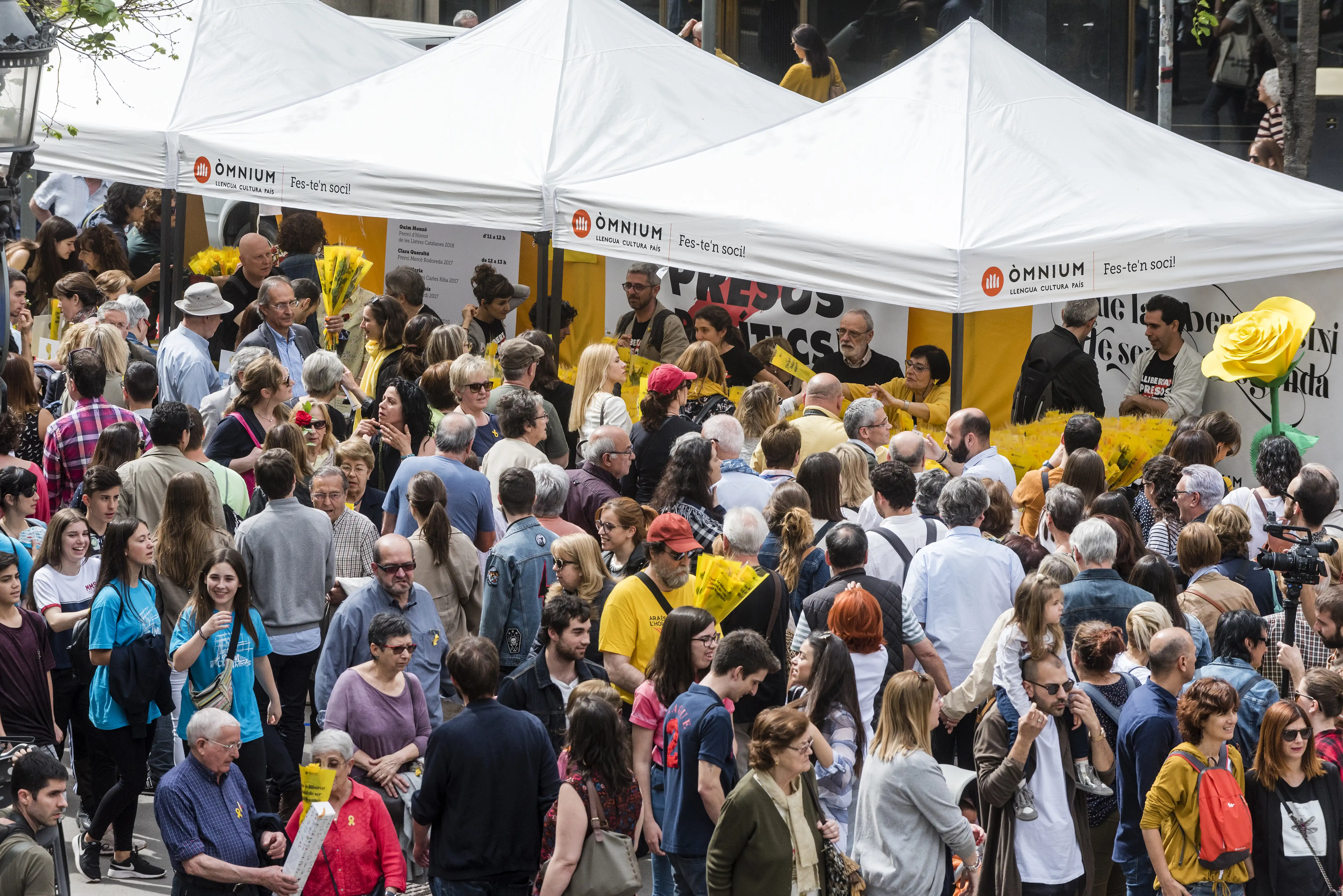 El 23 de abril es uno de los días más importantes de la cultura catalana,[1] en el que se intercambian libros y rosas. Los preparativos para el Día de los Libros y las Rosas comienzan mucho antes del 23 de abril[2] En Barcelona, la ciudad se empapela con carteles en todos los barrios, y la actividad central está en La Rambla, el Paseo de Gracia y la Rambla de Cataluña.[2] En las aceras se instalan carpas desde las cuales se venden libros y rosas rojas.[2][3] Las librerías traen sus materiales afuera, y varias asociaciones, sindicatos y escuelas se alinean en las calles en las mesas. Además, hay pequeñas mesas de ilustradores y autores que venden y firman sus libros.[2] Aunque hay una gran actividad en las calles, las librerías también están llenas este día con filas que se extienden afuera.[2]
