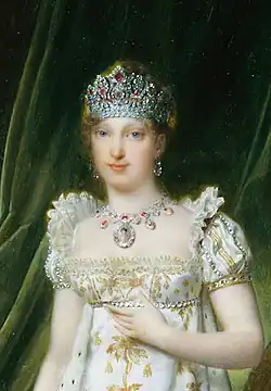 - ↑ a b c Dion, Anne, "Necklace and earrings of the Empress Marie-Louise", Museo del Louvre website. Consultado vía Internet Archive el 30 de diciembre de 2022.