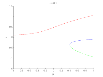 el cual es estructuralmente estable cuando , si un diagrama de bifurcación es dibujado, considerando como el parámetro de bifurcación, pero para valores distintos de , el caso es la bifurcación de Pitchfork simétrica. Cuando , se dice que se tiene una bifurcación de Pitchfork con simetría rota. Esto es ilustrado en la animación de la derecha.[2]