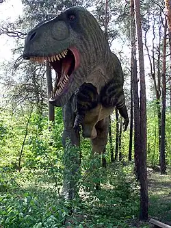 - Las aves. Puede sorprender hallar aquí a las aves, pero durante los últimos años se han acumulado numerosas y muy contundentes pruebas de que pequeños dinosaurios carnívoros deinonicosaurios dieron origen a las aves durante el periodo Jurásico.[3] A medida que los científicos han descubierto más terópodos no-avianos que están cercanamente relacionados con las aves, la distinción antes clara entre no-aves y aves se ha vuelto borrosa. Los recientes descubrimientos en la provincia de Liaoning del noreste de China demuestran que muchos pequeños dinosaurios terópodos tenían plumas, lo que contribuye a esta ambigüedad de límites.[4] La primera ave (Archaeopteryx) tenía numerosos caracteres reptilianos, como dientes, alas con dedos provistos de garras y una larga cola con numerosas vértebras. Por todo ello, hay pocas dudas de que las aves deben clasificarse dentro de Dinosauria.