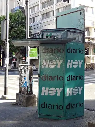 ![]() Puesto de venta con la publicidad de Diario Hoy. | ||