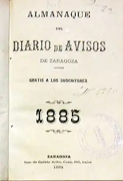 El Diario de Avisos de Zaragoza llegó a alcanzar a finales del siglo XIX una tirada de 13 000 ejemplares.[5] En ocasiones el Diario editó un suplemento titulado Diario de Avisos Ilustrado, así como un almanaque. Entre 1907 y 1909 publicó una sección bajo el título de La Semana Agrícola con periodicidad semanal.[nota 1]No se publicó entre el 27 de marzo de 1919 y el 4 de abril de 1920.[nota 2]