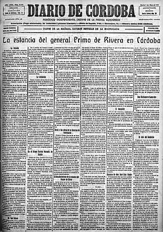 El Diario de Córdoba continuó publicándose tras el estallido de la Guerra civil,[n. 1] pero la Ley de prensa de 1938 estableció unos requisitos que periódicos como el diario cordobés no podían asumir, por lo que acabó desapareciendo ese mismo año.[13] Su último número apareció el 30 de septiembre de 1938.[14][n. 2]
