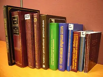 Los diccionarios jurídicos bilingües también pueden cumplir una variedad de funciones. Primero, pueden tener palabras de entrada en un idioma y definiciones en otro idioma; estos diccionarios brindan ayuda para comprender textos jurídicos, generalmente escritos en un idioma extranjero, y para adquirir conocimientos, generalmente sobre un sistema jurídico extranjero. En segundo lugar, los diccionarios de derecho bilingües con palabras de entrada en un idioma y equivalentes en otro idioma brindan ayuda para traducir textos jurídicos, hacia o desde un idioma extranjero y, a veces, también para producir textos jurídicos, generalmente en un idioma extranjero.[2]