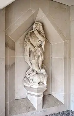 Hoy en día, en Highgate Hill frente al Hospital Whittington, hay una estatua en honor a la legendaria gata de Whittington en el sitio donde, según versiones tardías de la historia, las distantes Campanas de Bow Bells llamaron al joven Dick a Londres para reclamar su fortuna.[5] La estatua de la gata fue colocada sobre la Piedra de Whittington más tarde, en 1964.[6]