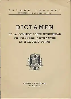 - ↑ «Dictamen de la Comisión sobre ilegitimidad de poderes actuantes en 18 de Julio de 1936». Biblioteca Nacional de España. Consultado el 28 de julio de 2017.