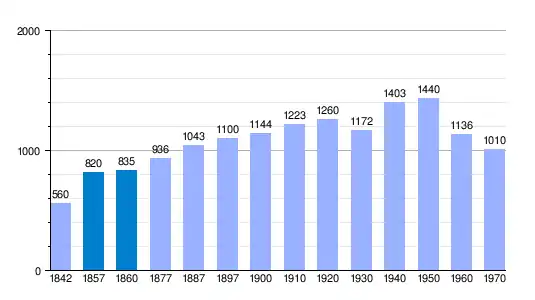 | Gráfica de evolución demográfica de Diego Álvaro[2] entre 1842 y 1970 |