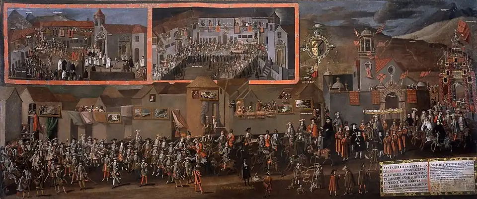 - En 1723 se celebraron en Lima con pomposas fiestas el matrimonio del príncipe de Asturias, después rey bajo el nombre de Luis I, con la princesa Luisa Isabel de Orleáns, que se había realizado el año anterior.[41][28]