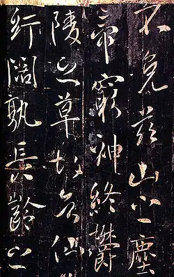 Hubo una larga serie de conflictos con el Tíbet sobre territorios en la cuenca del Tarim entre 670-692, y en 763 los tibetanos incluso capturaron la capital de China, Chang'an, durante quince días durante la rebelión de An Lushan.[134][135] De hecho, fue durante esta rebelión que Tang retiró sus guarniciones occidentales estacionadas en lo que ahora es Gansu y Qinghai, que los tibetanos ocuparon junto con el territorio de lo que ahora es Xinjiang.[136] Las hostilidades entre Tang y Tíbet continuaron hasta que firmaron un tratado de paz formal en 821.[137] Los términos de este tratado, incluidas las fronteras fijas entre los dos países, se registran en una inscripción bilingüe en un pilar de piedra fuera del templo de Jokhang en Lhasa.[138]