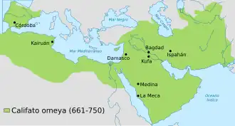 ![]() Máxima extensión del califato omeya. | |||||||||||||||||||||||||||||||||||||||||