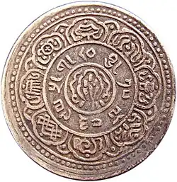 La primera moneda que se utilizó ampliamente en el sur del Tíbet era monedas de plata, las cuales eran suministradas por los Reinos nepaleses de Malla y los primeros reyes del subsiguientes de la dinastía Shah desde alrededor de 1640 hasta 1791.[7]