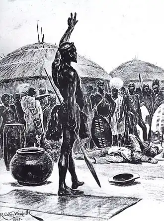 - ↑ Thomas B. Jenkinson: Amazulu: The Zulus, Their Past History, Manners, Customs, and Language (Amazulu: Los zulúes, su historia, sus modos, sus costumbres y su lengua). W.H. Allen (hoy, Virgin Boooks). 1884. Pág. 123 (n139).