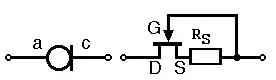 Estos diodos consisten en un JFET de canal N con la compuerta cortocircuitada a la fuente, que funciona como un limitador de corriente de dos terminales o una fuente de corriente (análoga a un diodo Zener limitador de voltaje). Permiten que una corriente a través de ellos alcance un cierto valor y luego se nivele a un valor específico. A diferencia de los diodos Zener, estos diodos mantienen constante la corriente en lugar del voltaje. Estos dispositivos mantienen la corriente que fluye a través de ellos sin cambios cuando cambia el voltaje.[1][2][3][4]