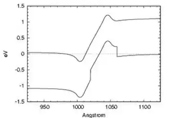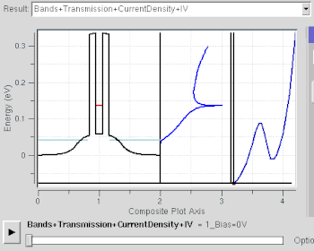 Otra característica observada en las estructuras RTD es la presencia de resistencia negativa al aplicar la diferencia de potencial, como se ilustra en la imagen generada desde Nanohub. La formación de esta resistencia negativa será analizada en detalle en la sección de operación que sigue a continuación.