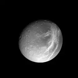 - ↑ Martinez, C. (2005). Cassini Views Dione, a Frigid Ice World Archivado el 11 de mayo de 2021 en Wayback Machine.. nasa.gov.