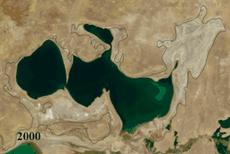 - ↑ Ilan Greenberg. «A vanished sea reclaims its form in Central Asia» (en inglés). International Herald Tribune. Archivado desde el original el 10 de marzo de 2007.