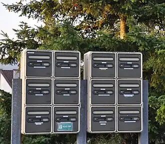 - ↑ — PDF «L'abc de la boîte aux lettres», documentation pour l'habitat horizontal et les lotissements Archivado el 21 de agosto de 2010 en Wayback Machine., brochure de febrero de 2008 en el sitio laposte.fr.