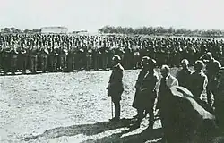 - ↑ Majnó, al igual que otros atamanes osciló entre diversas lealtades: favorable primero a los soviéticos, apoyó luego al Directorio, se pasó de nuevo a las fila soviéticas y acabó defendiendo la implantación de una república campesina anarquista.[80]