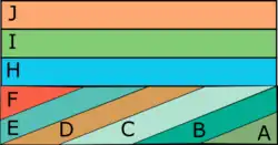 Disconformidad - Discordancia con estratos paralelos por abajo y por encima de una superficie de erosión visible. Esta se forma por una secuencia de estratos antigua que fue expuesta a un periodo de erosíon visible, más la secuencia de estratos más joven se depositó superponiendose sobre esta, manteniendo el paralelismo entre los diferentes grupos de estratos.