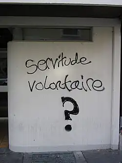 El Discurso sobre la servidumbre voluntaria (en francés, Discours de la servitude volontaire) es un libro escrito por Étienne de La Boétie. Publicado en latín en fragmentos en 1574 y luego en francés en 1576, fue escrito por La Boétie probablemente a la edad de 16 o 18 años.[1]