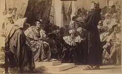 - ↑ Los debates teológicos de la Reforma adoptaron a menudo la forma de polémicas intelectuales, en las que intervinieron no sólo Lutero, Melanchton, Zwinglio o Calvino, sino Erasmo de Rotterdam (De libero arbitrio, al que Lutero respondió con De servo arbitrio), Tomás Moro (consejero de Enrique VIII, que en su fase católica polemizó con Lutero en defensa del Papa, lo que le hizo ganar el título de Defensor Fidei) o Luis Vives.