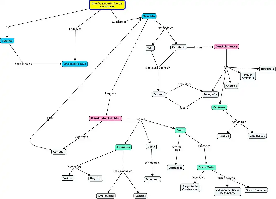 El Diseño geométrico de carreteras es la técnica de ingeniería civil que consiste en situar el trazado de una carretera o calle en el terreno. Los condicionantes para situar una carretera sobre la superficie son muchos, entre ellos la topografía del terreno, la geología, el medio ambiente, la hidrología o factores sociales y urbanísticos.[1] El primer paso para el trazado de una carretera es un estudio de viabilidad[2] que determine el corredor donde podría situarse el trazado de la vía. Generalmente se estudian varios corredores y se estima cuál puede ser el coste ambiental, económico o social de la construcción de la carretera. Una vez elegido un corredor se determina el trazado exacto, minimizando el coste y estimando en el proyecto de construcción el costo total, especialmente el que supondrá el volumen de tierra desplazado y el firme necesario.