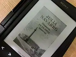 Portada de la novela de Julia Navarro en un lector de libros electrónicos. | |||||