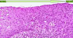 - Universidad de Utah, Escuela de Medicina. Imagen de una displasia de cuello uterino; Displasia cervical escamosa de mayor magnificación Descripción en inglés. Último acceso 5 de marzo de 2008.