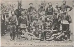 La mayoría de los arrumanos durante la disputa por Macedonia eran progriegos y apoyaban a los revolucionarios griegos y al Patriarcado Ecuménico de Constantinopla.[28][29][30] Estos arrumanos escaparon o resistieron la influencia del intervencionismo rumano,[31] en el que el Estado rumano gastó una cantidad considerable de dinero.[32] Se mostraron indiferentes o incluso hostiles a su movimiento nacional.[28] En los archivos del Ministerio de Asuntos Exteriores de Grecia se encuentran numerosos testimonios de comunidades arrumanas que denuncian la "propaganda" rumana y proclaman su carácter griego.[32] En Veria, había una pequeña unidad local que estaba bajo el liderazgo de un arrumano progriego, Tasos Koukotegos. Esta unidad, al ser pequeña y algo aislada, había estado operando sin objetivos definidos, pero resultó ser muy importante para la causa griega ya que ayudó en las luchas contra los jefes turcos locales, los rumanos pro rumanos y los komitadjis búlgaros.[32] Además, el apoyo local de los arrumanos progriegos en Kastoriá fortaleció la actividad griega en la región. Un notable makedonomachos griego de ascendencia arrumana fue Anastasios Pichion.