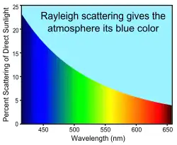 Tomándolo cómo ejemplo, la distribución relativa de potencia espectral del sol aparenta blanca si se observa directamente, mientras que cuando ésta ilumina la atmósfera terrestre, el cielo se torna azul en condiciones de iluminación diurna normales. Esto se debe a un fenómeno óptico llamado dispersión de Rayleigh, que provoca una ganancia sobre las longitudes de onda más cortas respecto a las más largas, y por tanto, el color que se aprecia es el azul.