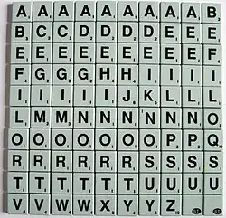 Muchas ediciones del juego de tablero Scrabble varían en la distribución de letras de las piezas, porque la frecuencia de aparición de cada letra en el alfabeto es diferente para cada idioma. Como regla general, la letra más rara es la que vale más.
