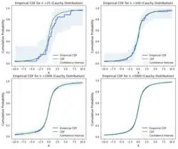 por lo tanto, el estimador es consistente. Esta expresión establece que hay convergencia puntual de la función de distribución empírica a la verdadera función de distribución acumulativa. Un resultado más lógicamente fuerte, llamado el teorema de Glivenko-Cantelli, establece que la convergencia de hecho ocurre uniformemente sobre t:[6]
