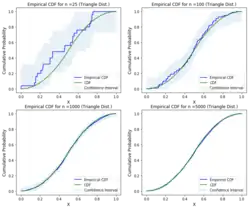 Alternativamente, la tasa de convergencia de también se puede cuantificar en términos del comportamiento asintótico de la suposición de esta expresión. El número de resultados existen en este lugar, por ejemplo, la desigualdad de Dvoretzky–Kiefer–Wolfowitz proporciona probabilidades limitadas en la cola de :[7]