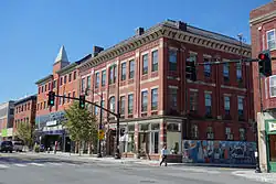 Tres de los edificios están ubicados justo al oeste de Dean Street, mientras que los otros tres están justo al este. Cinco de los seis edificios se construyeron entre 1870 y 1900, y el sexto en 1933. Estos cinco, el más prominente de los cuales es el Bloque Burrows, están construidos uniformemente con ladrillo y mampostería, mientras que el Bloque Chiapinelli, en el extremo este del distrito, es un edificio de oficinas de estilo art déco con una fachada principal de hormigón y paredes laterales de ladrillo.[1] Está a poca distancia al oeste de la Interestatal 95.