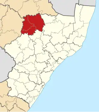 ![]() Ubicación del distrito de Amajuba en KwaZulu-Natal. | ||