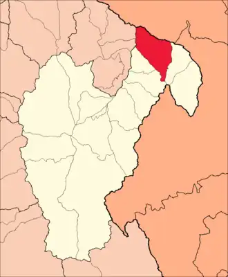 ![]() Localización del distrito de Paucas en la provincia de Huari. | ||