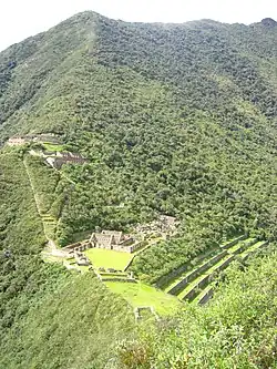 Choquequirao (del quechuachuqi, oro, y de k'iraw, cuna, es decir: "cuna de oro"),[7] son los restos arqueológicos de una ciudad inca situada entre las estribaciones del nevado Salcantay, y bajo la jurisdicción del Distrito de Santa Teresa, provincia de La Convención, Departamento del Cuzco, al sur del Perú.[8] El entorno de Choquequirao es uno de los más ricos en biodiversidad. Todas estas especies se han acondicionado a pesar de las variaciones de temperatura como es sol durante todo el día e inclementes heladas durante la noche. La fauna del lugar está compuesta principalmente por cóndores, tarucas, vizcachas, zorros, zorrinos, pumas, picaflores, osos y el gallito de las rocas, ave nacional del Perú. En su flora destacan los helechos gigantes, el ichu y una gran variedad de orquídeas, donde resalta la de la variedad wakanki.[9] para servicio de transporte recomiendo transporte dialta las 24 horas contáctate al 993697808-.