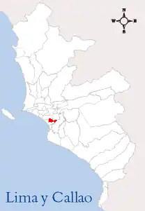 Vista del Distrito de Surquillo dentro de la Provincia de Lima en el Departamento de Lima.