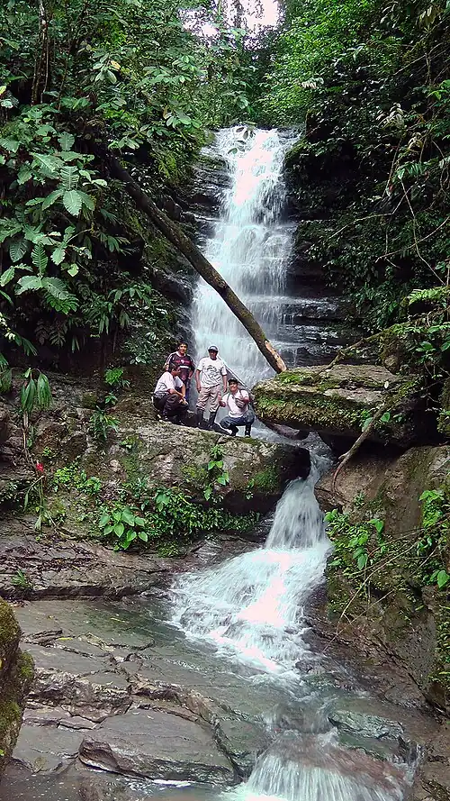 | CASCADA AGUA DULCE | Hermosa cascada de agua dulce que discurre sobre rocas a manera de plataformas en medio de la espesura de la selva. Es afluente del río Cachiyacu, mide 35 m de altura. Se ubica en el centro poblado de Shapaja, a 3 horas con 20 minutos de caminata siguiendo el curso del río Cachiyacu de Santa Ana. Forma parte de la zona de amortiguamiento del parque nacional “Cordillera azul”.