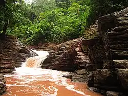 | CASCADA ESCALERA | Una de las magníficas expresiones de la naturaleza que conjuga agua salada con rocas que forman un encañado donde el visitante puede caminar en sus orillas, subir escalones como si fuera una escalinata. Se encuentra ubicado en el centro poblado de Shapaja, a 2 horas con 40 m. de caminata siguiendo el curso del río Cachiyacu de Santa Ana.