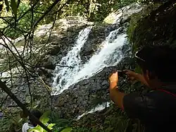 | CATARATA BÉLGICA | Catarata “BÉLGICA” única en su género por presentar jardines en dos niveles. Mide 120 m de altura.Ubicado en el fundo “G.J.G” del río Cachiyacu de Santa Ana. Forma parte de la zona de amortiguamiento del parque nacional “Cordillera azul”.