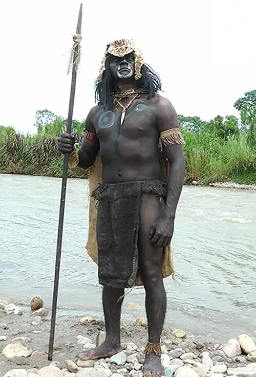 Durante la caza en el bosque llevaban un arco con flecha y la temible “Pucuna”. Mientras que para la guerra, añadían al rostro líneas blancas con ojos y dientes agrandados, esta pintura era disuasiva y hacía temer al enemigo.