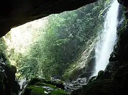 | CASCADA CORTINA DE UCHIZA | Una maravilla natural cuyas aguas descienden desde una plataforma de piedra y se dispersan cual cortina de agua para luego depositarse en una extensa piscina natural. En el interior se encuentra un pasadizo natural donde se puede pasar sin mojarse. Mide 7 m. de alto por 40m de ancho. Se encuentra ubicado en el centro poblado de Shapaja, a 4 horas de caminata siguiendo el curso del río Cachiyacu de Santa Ana. Forma parte de la zona de amortiguamiento del Parque Nacional “Cordillera azul”.