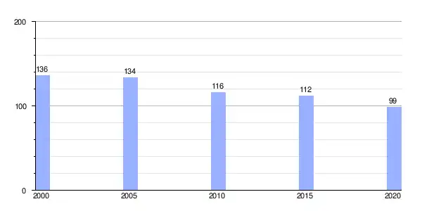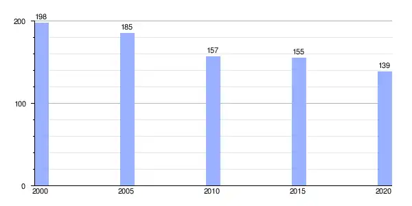 | Gráfica de evolución demográfica de Distriz (aldea) entre 2000 y 2020 |