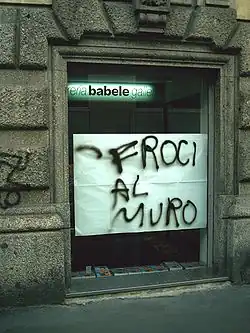 - ↑ Anna Cirillo (7 de abril de 2007). «Scritte e simboli nazisti, attacco ai gay». La Repubblica (en italiano). Consultado el 26 de mayo de 2009.